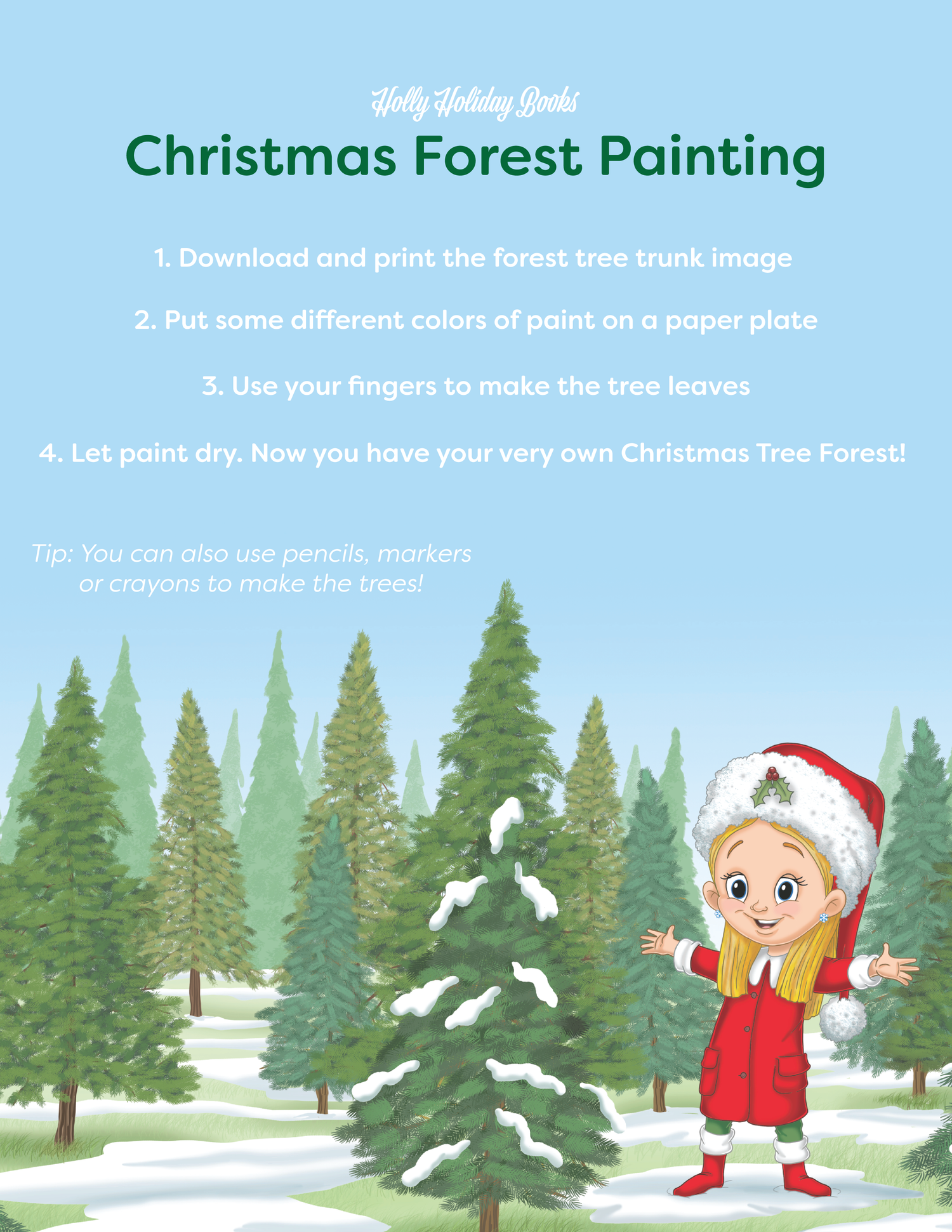 Make your own Christmas Forest just like Holly! Download the forest template and paint, draw, or color the trees to create a winter wonderland right before your eyes.